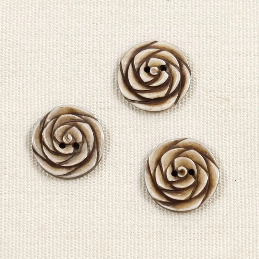 Roseknapp i bein – 15 mm Brun – håndlaget i Nepal (10 stk)