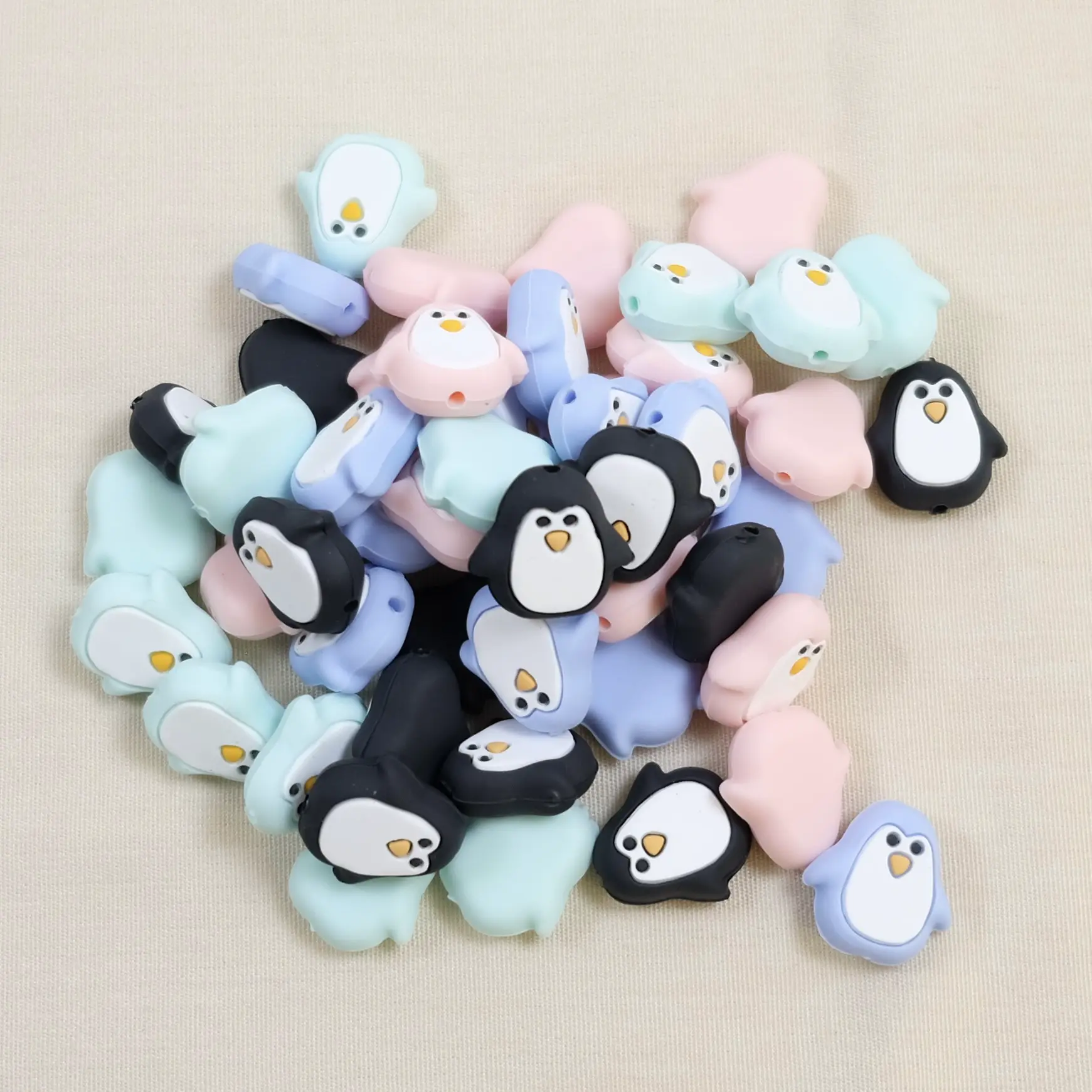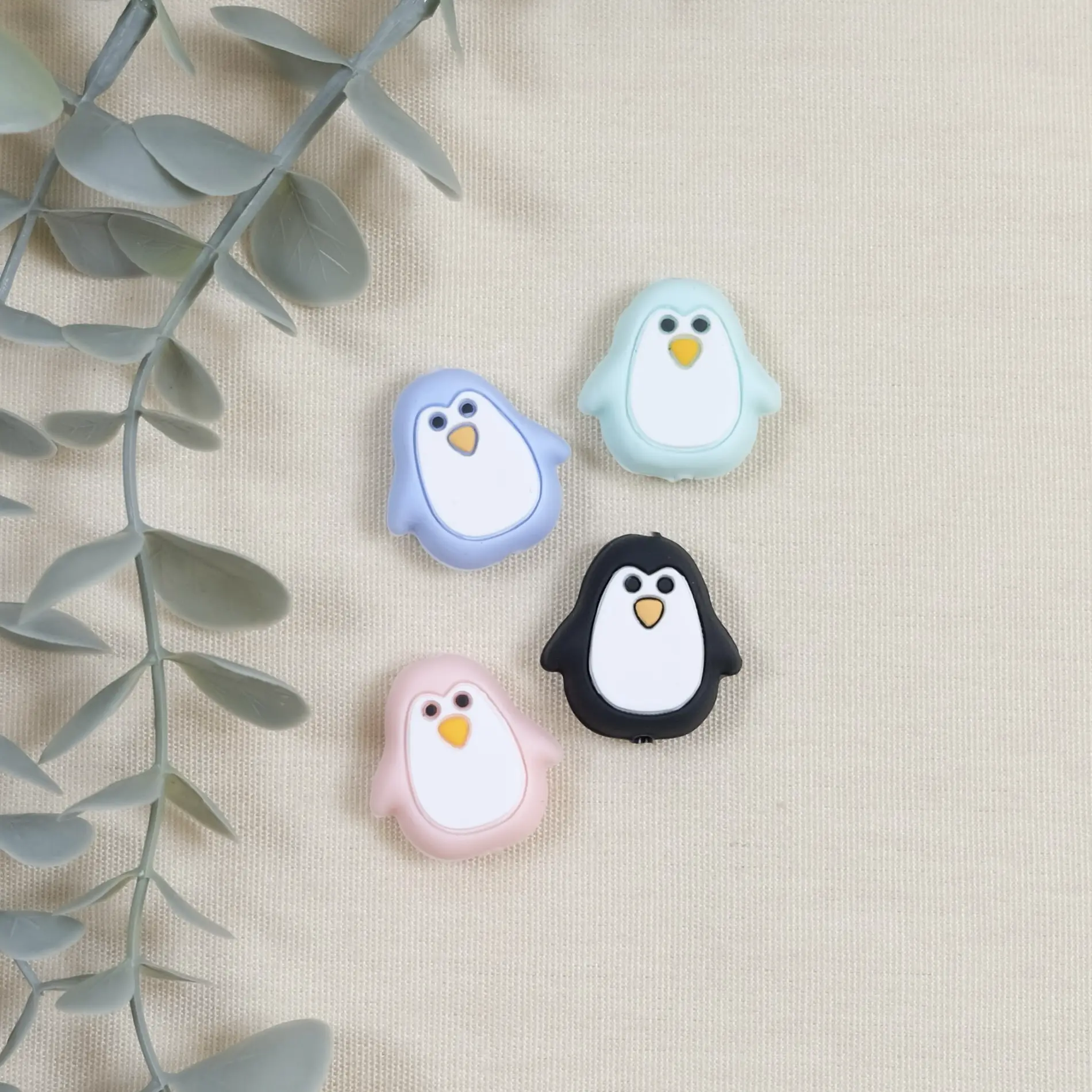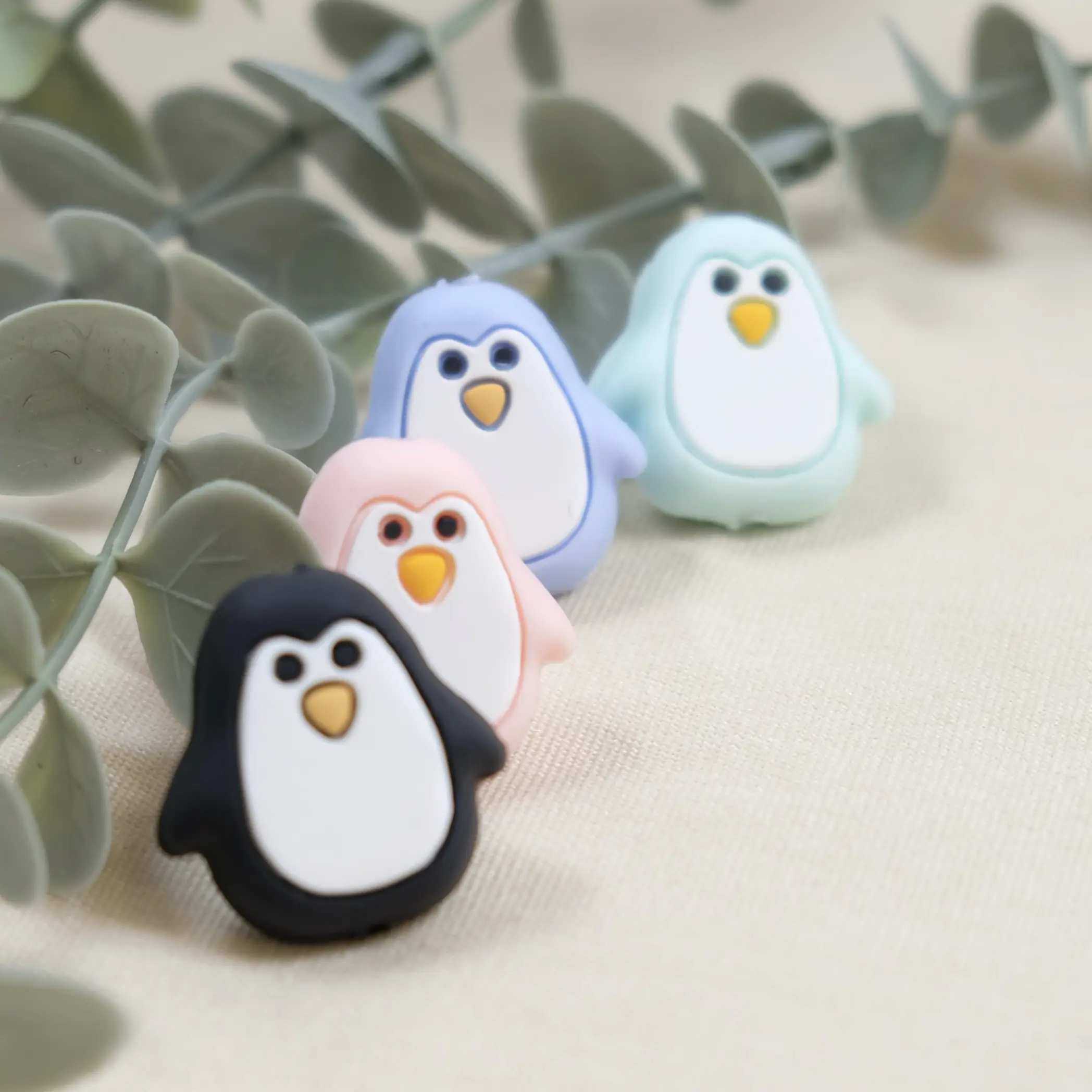 Pingviner som sitter godt på tuppen av pinnene. Materiale: silikon – leveres i pose med 50 stk i fire forskjellige farger.