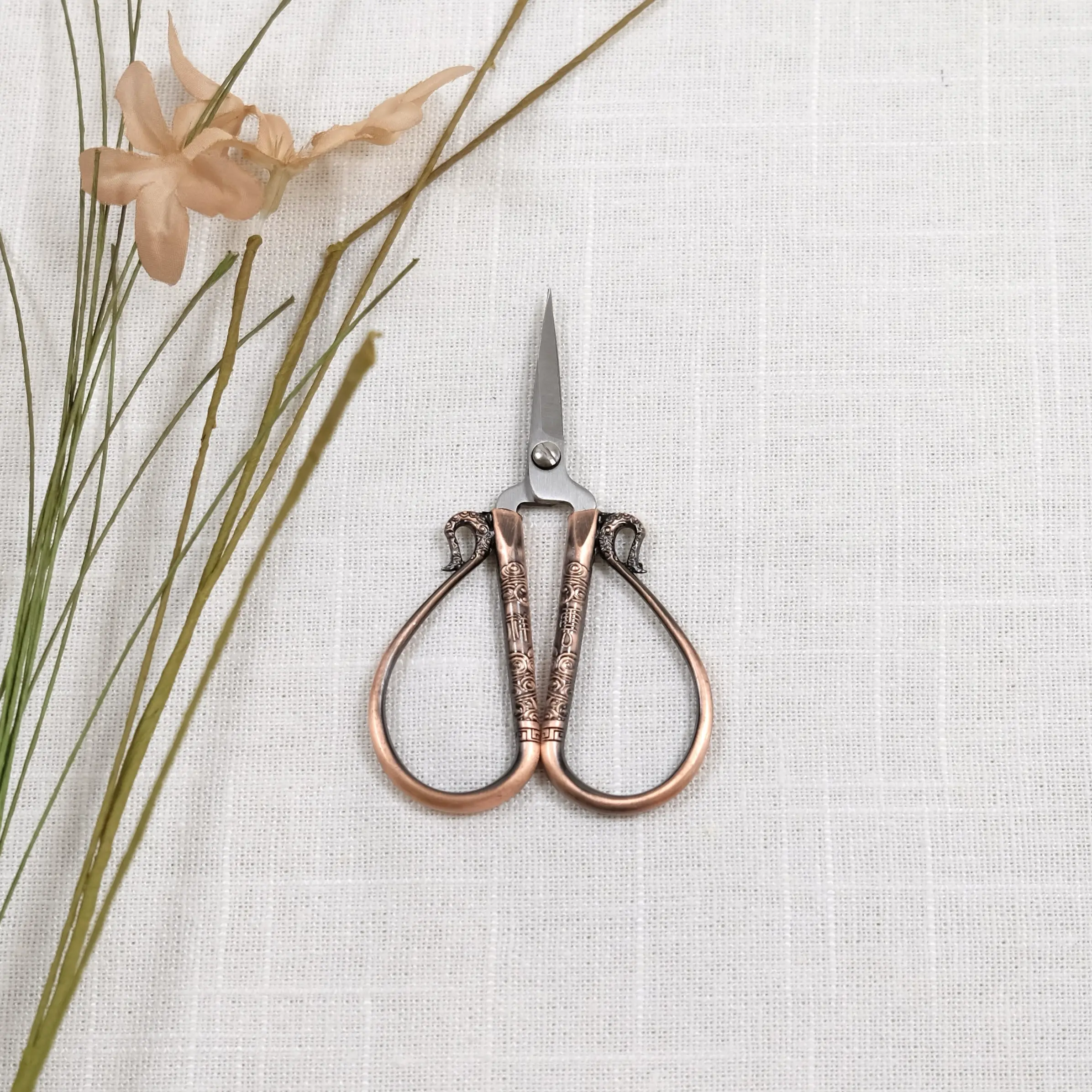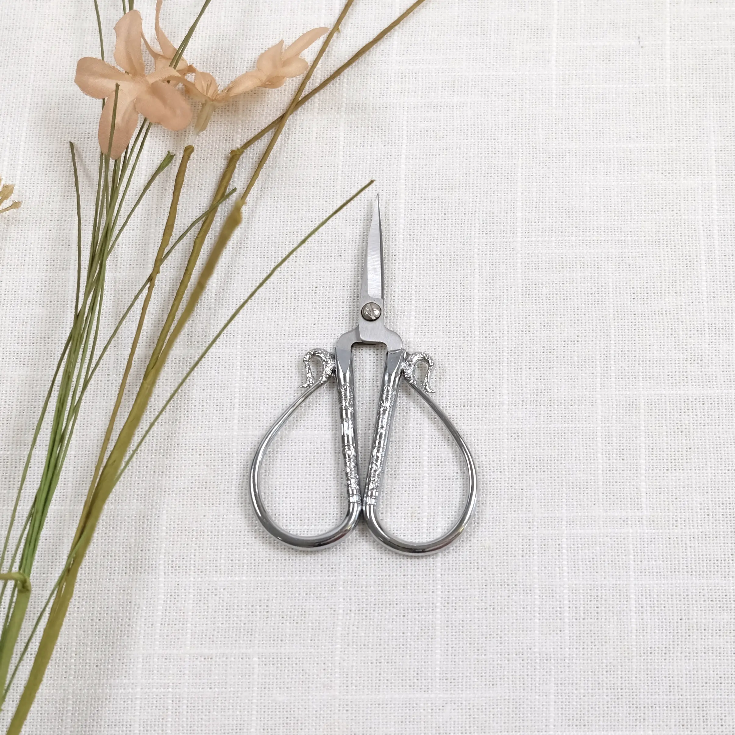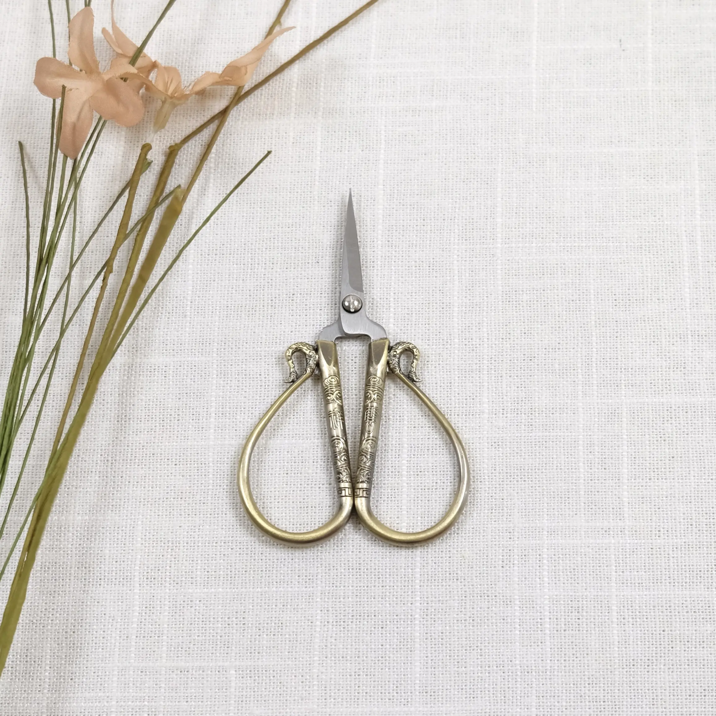 Broderisaks – kinesisk kjærlighetssaks er en vakker og praktisk saks til håndarbeid og finere arbeider i garn og tekstiler. Det er nydelige form på saksen, med enkle og elegante kinesiske ornamenter. Saksen er laget i stål og er dekorert med malte elementer i metallfarger. Saksebladet holder seg sylskarp i en liten evighet, så lenge den ikke blir brukt til å klippe i papir.